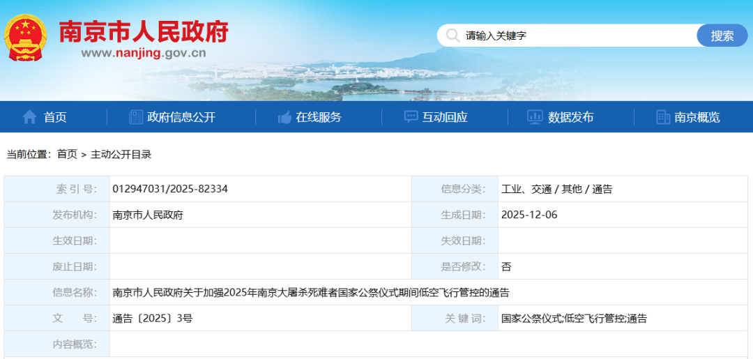 为进一步加强对“低慢小”航空器和空飘物的管理,维护2025年国家公祭仪式(以下简称“公祭仪式”)期间现场及周边地区低空空域安全,根据《中华人民共和国民用航空法》《无人驾驶航空器飞行管理暂行条例》《通用航空飞行管制条例》《中华人民共和国治安管理处罚法》等有关法律法规,对“低慢小”航空器和空飘物实施临时管控。现将有关事项通告如下: