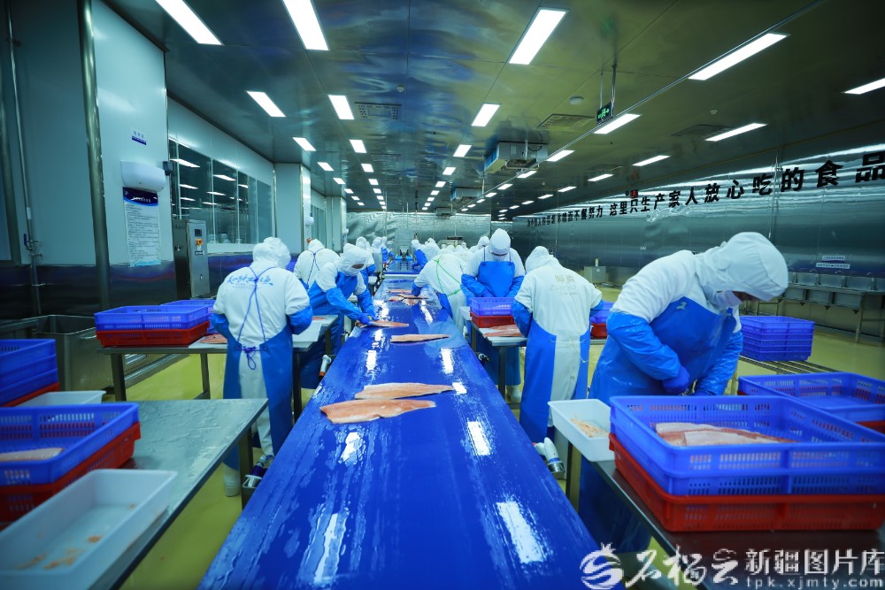 在喀什市伯什克然木乡深喀现代农业产业园,新疆云梦泽实业(集团)有限责任公司工厂化循环水海鲜养殖示范基地里,一条条新鲜宰杀的三文鱼正在称重、装箱,发往喀什市区的餐厅、市场乃至其他城市的商超和酒店,让更多消费者能快速品尝到这份来自喀什的“鲜味”。
