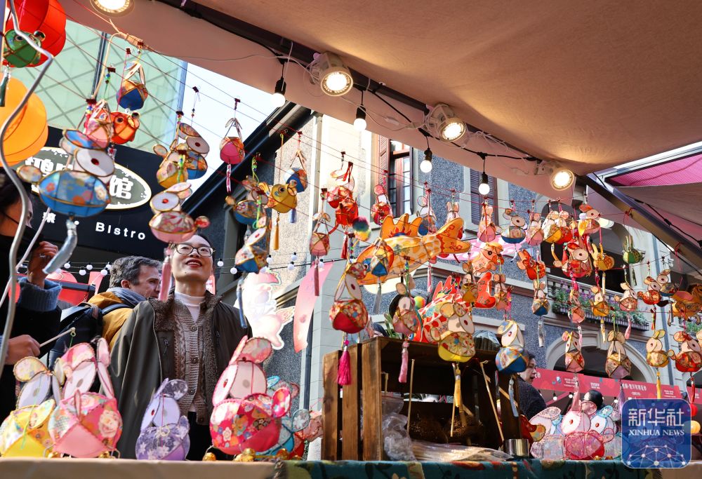 ↑1月23日,市民在江苏省南京市白马生活广场举办的年货市集上选购年货。新华社发(孙忠南摄)