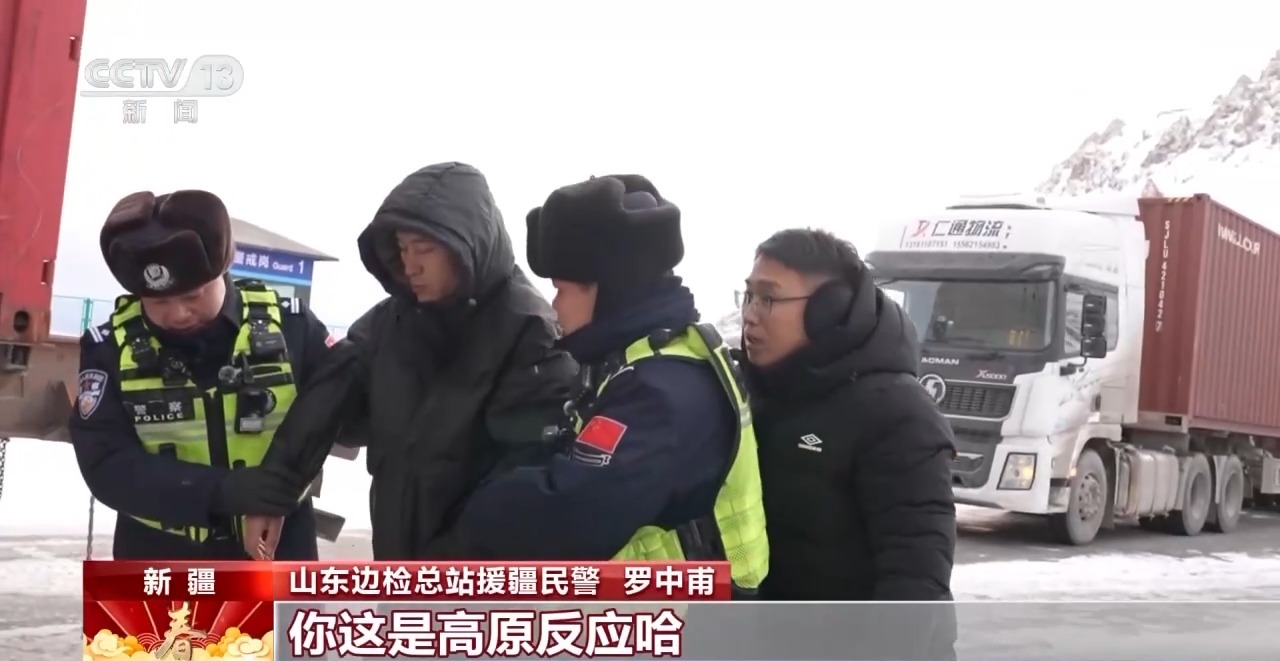 山东边检总站援疆民警 罗中甫:咱现在走的是今年刚修好的高速路,以前没有这条高速的时候从我们站机关到前哨班需要3到4个小时,一旦遇到山体滑坡、泥石流或者发洪水的时候,这个路程走起来就非常艰难了。当地群众有句俗话就说,风吹石头跑,一年四季穿棉袄。
