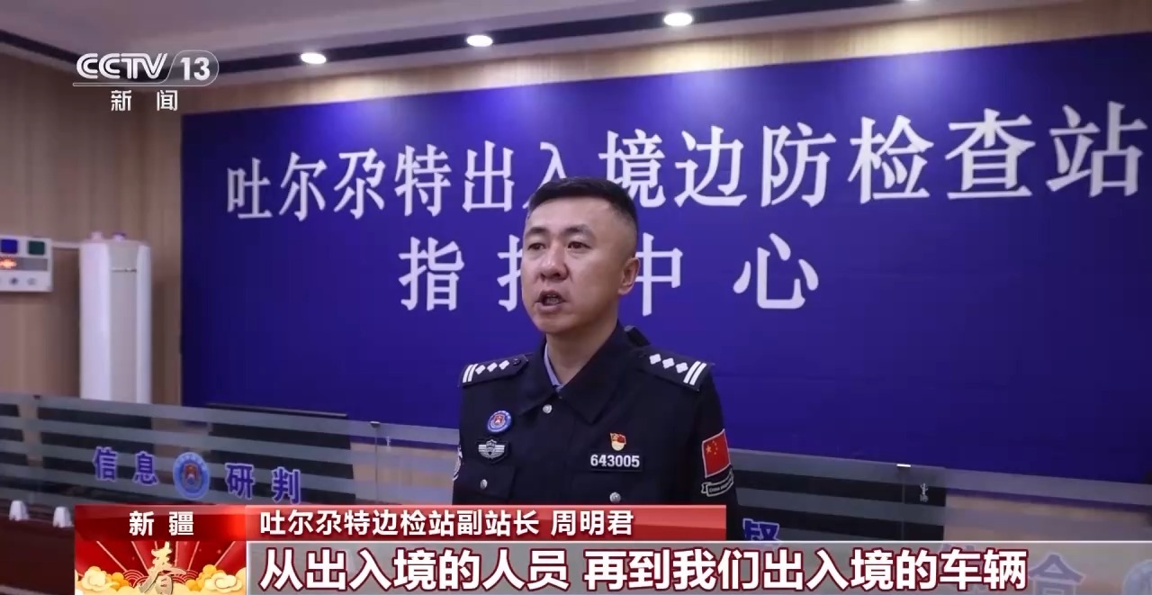 吐尔尕特边检站副站长 周明君:这两年吐尔尕特口岸从出入境的人员,再到出入境的车辆,呈现了井喷式的增长。2025年我们全年通关的出境旅客达到28万人次,全年通关的出境车辆达到24万辆次。