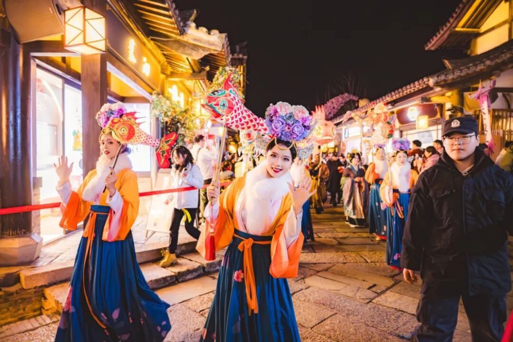 古街古镇藏着常州最本真的人文烟火,成为游人寻觅年味的首选之地。青果巷浸润千年江南文脉,“棠影载春熙”活动将国风韵味与人文底蕴深度融合,千盏海棠花灯缀满巷陌,与粉墙黛瓦、青石板路相映成趣,国风舞蹈、婉转民乐轮番上演,投壶等传统游戏点缀其间,国风市集里好物琳琅,身着汉服的游客缓步穿行,让传统文化在消费体验中焕发新生。焦溪古镇的青石板路人潮如织,龙溪河上狮舞欢腾,“焦外赶集”30余个摊位烟火十足,演艺活动与当代艺术展相映成趣,带动餐饮、住宿消费稳步增长。