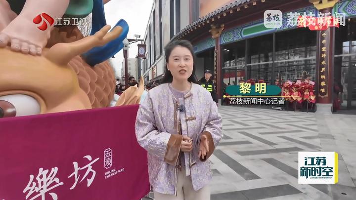荔枝新闻中心记者黎明说:“魁星点斗、独占鳌头!这个春节,南京又多了一个网红打卡地,就是我身后的这座金陵长乐坊。它把600年前的金陵城直接‘搬’到了我们眼前。”
