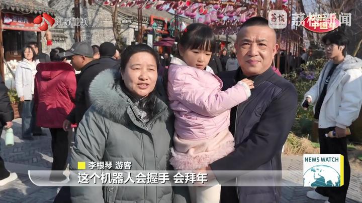 游客李根琴说:“这个机器人会握手、会拜年,还会送马年的祝福,我们的小孙女特别喜欢。我们也觉得很热闹,很新鲜。”
