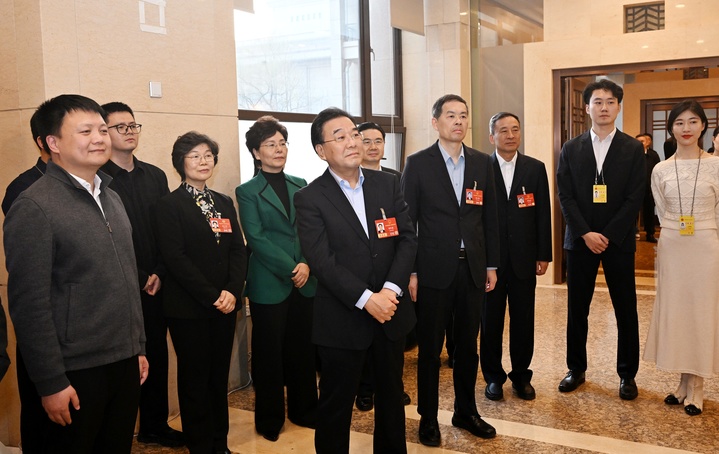 3月10日,省委书记、省人大常委会主任信长星,省长刘小涛,省政协主席张义珍在江苏代表团驻地看望参加全国两会报道的中央媒体和江苏媒体编辑记者。