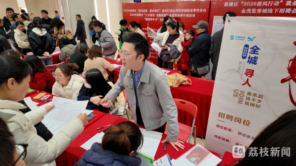傍晚六点半,南京金茂览秀城内,一场由人社部门搭台、企业摆摊的“人才夜市”正在营业。数十个招聘摊位融入商场动线,刚下班的市民放缓脚步,有人驻足细看,有人坐下来和企业聊了起来。