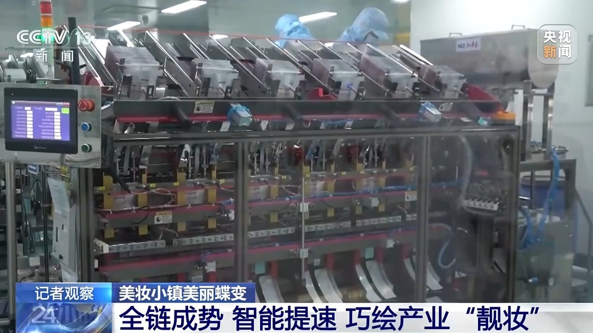 如今,埭溪3平方公里的产业园区内,已集聚330多家美妆上下游企业。产业链齐全是发展基础,而真正让国货敢于与国际大牌同台竞争的,是智能制造。这里拥有国内首家化妆品5G智能工厂,从灌装、贴标到打包,实现全流程自动化,一条生产线单日便可生产200万片面膜。