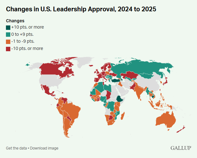 此项民调是盖洛普于2025年在130多个国家进行的,对比了中国、美国、德国、俄罗斯四国的全球领导力。报告强调,调查早于2026年初发生的几项重大事件,包括美国退出66个国际组织以及2月底对伊朗的军事行动。