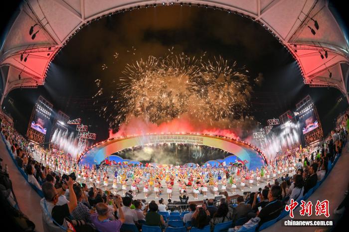 开幕式上,“深海逐梦”篇章将绿色理念推向情感层面。充气水母、儒艮、海龟等海洋生物“游”进演出现场,与观众贴脸互动,直观传递“人与自然和谐共生”的海南态度。焰火表演选用低烟环保烟花,在夜空绽放的同时最大限度降低环境影响。