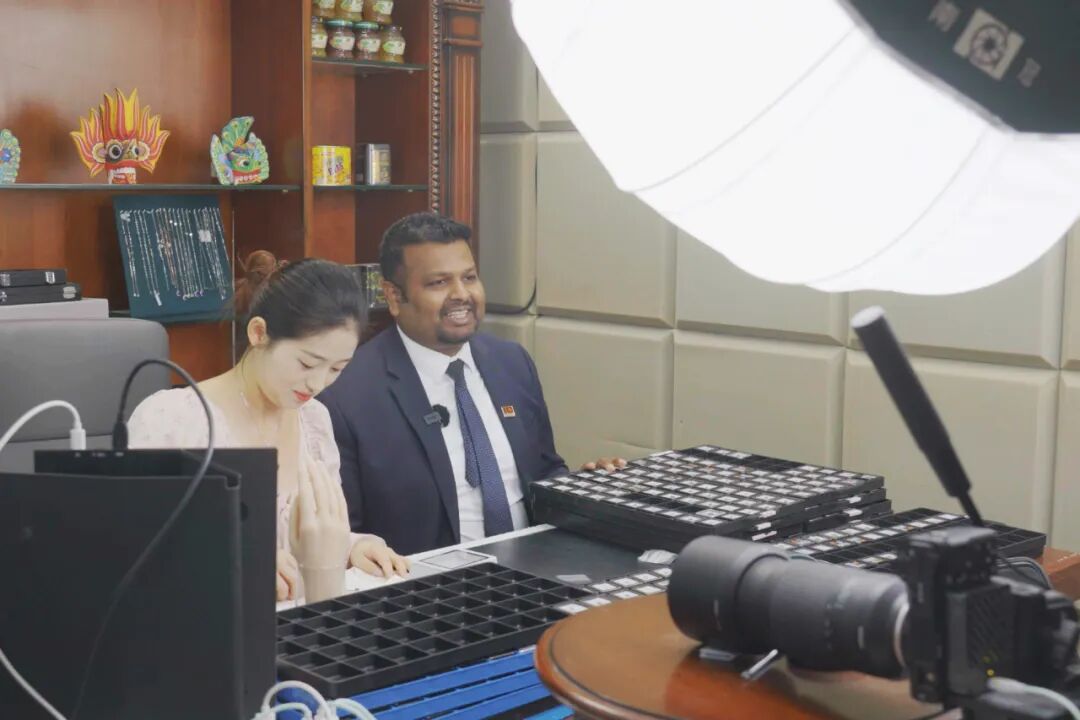 2021年,第四届进博会期间,晋兰加带来了一场特殊“展演”。受中国直播经济发展的启发,他邀请时任斯里兰卡驻华大使一同走进直播间。在镜头前,凭借一口流利的中文,他迅速拉近了与消费者的距离。几分钟内,数千库存就被“清空”了。