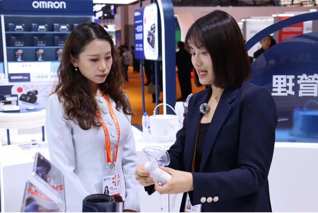 从最初“三次测量”到如今“一次完成”,欧姆龙房颤与血压同步测量的技术在进博会的舞台上不断进化,也折射出“全勤生”欧姆龙如何将健康管理的“点”连成“面”的战略跃升。欧姆龙品牌战略本部部长蔡蓓蓓介绍,从横向拓展出血糖监测系统、温灸仪、制氧机等多元产品矩阵;到纵向深度链接京东健康等线上平台与线下数千家药店,打造“房颤筛查专区”与“氧疗专区”,欧姆龙将硬件设备、数字化服务与健康场景无缝融合。